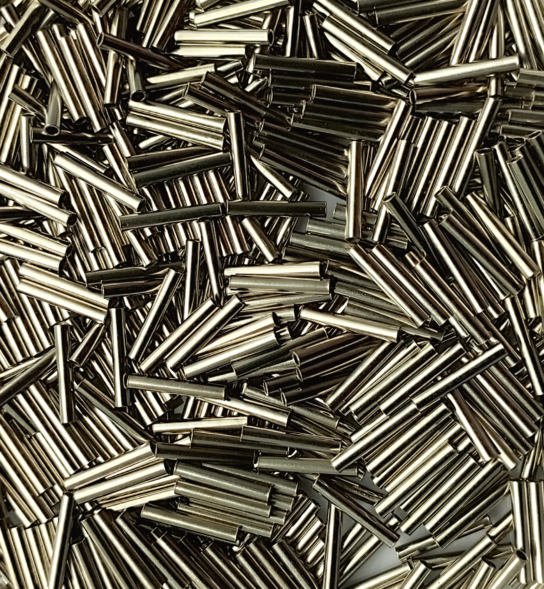 Sea Fishing Rig Crimps which are 8mm in length, with an internal bore of either 0.8mm, 1mm, 1.2mm or 1.4mm. Choose your size above. Use pliers to squeeze into place. Choose your quantity, they come in packs of either 250, 500 or 1000.